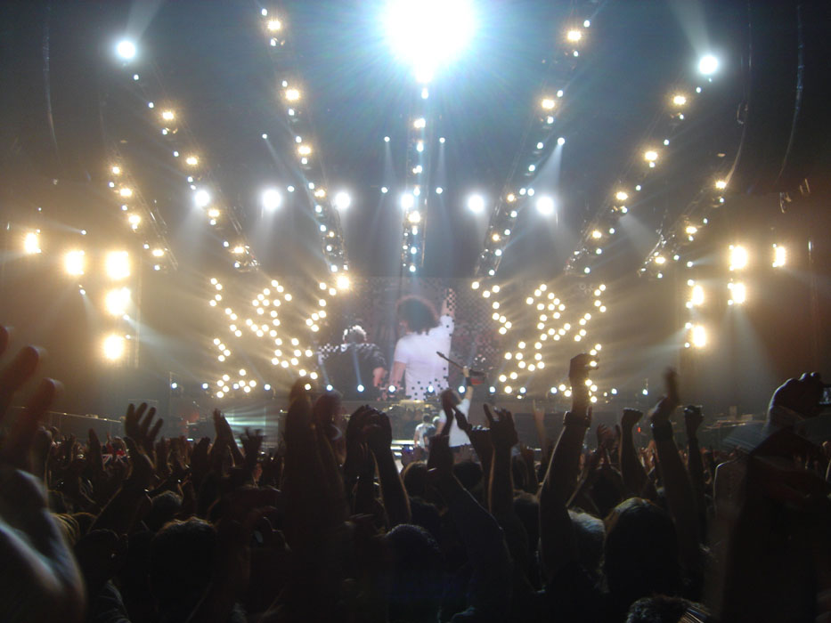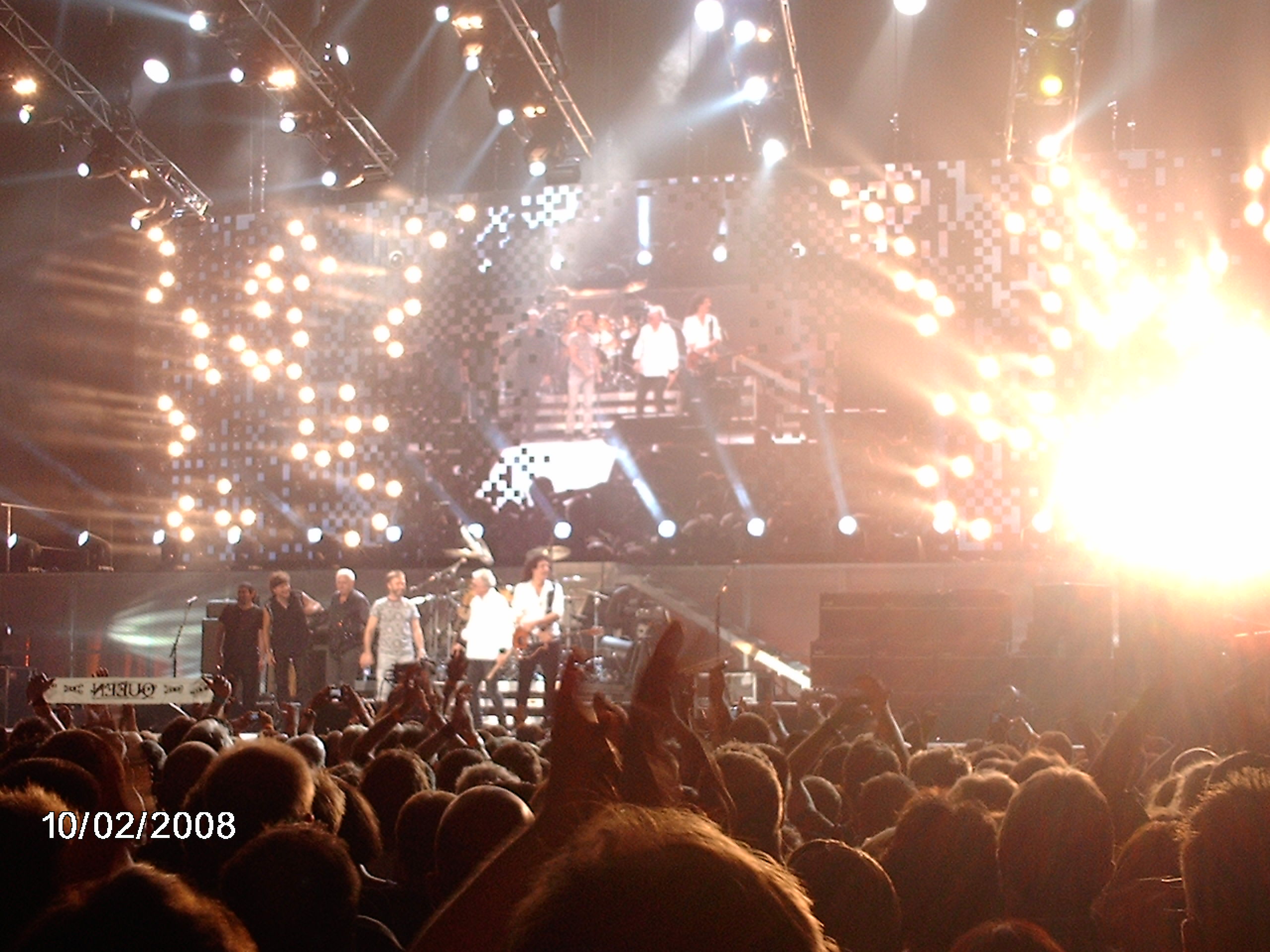 На концерте ничего специфического исполнено не было. Публика оказалась неистовой и дикой. Они отлично принимали все песни без исключения, даже Пола Роджерса. Было ясно, что любой концерт в этой стране – событие! Рядом со мной стоял какой-то местный «специалист», который весь концерт пытался угадывать сет-лист, а перед Cosmos Rockin’ долго изображал звуки из We Will Rock You и также долго удивляясь, что за песню они вдруг стали играть вместо хита с News Of The World.