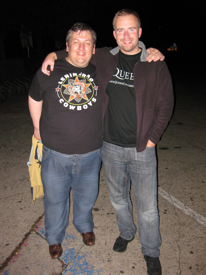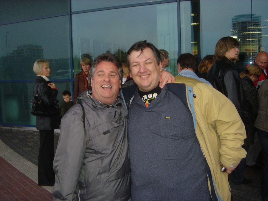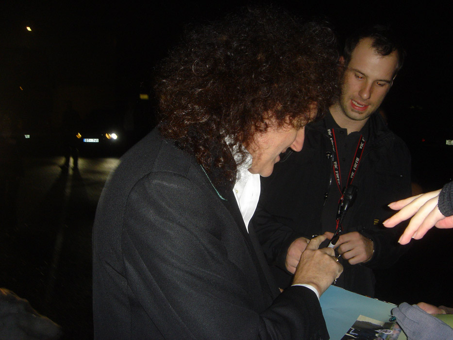 После концерта было решено продолжить приключения, и мы отправились их искать вокруг Riga Arena, где почти сразу же обнаружили группу фэнов из Литвы и Эстонии, которые дожидались выхода музыкантов. Начался активный чат. Очень рад, что некоторые из ребят ранее заходили на мой сайт и выражали почтение моей работе. Наше ожидание, наконец, было вознаграждено – Брайан вышел к нам и раздал всем страждущим автографы! Очень было приятно, что бы там Мэй не писал у себя на сайте. Гитарист Queen был как всегда добродушен и общителен, за что ему – отдельный респект. Тейлор и Роджерс, как обычно, подобное «мероприятие» проигнорировали.