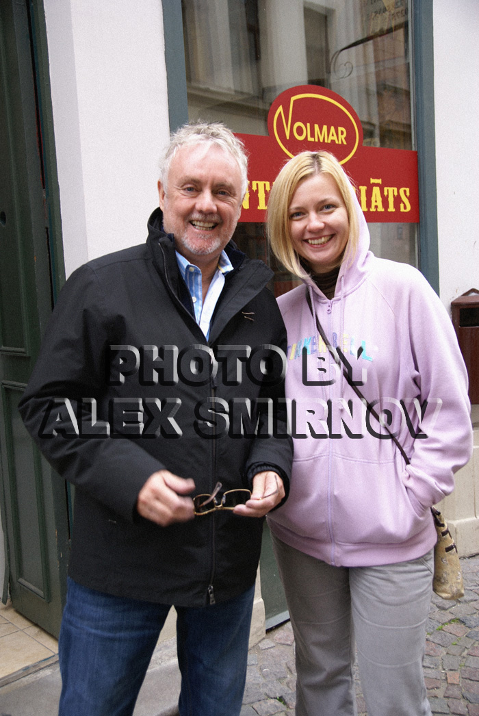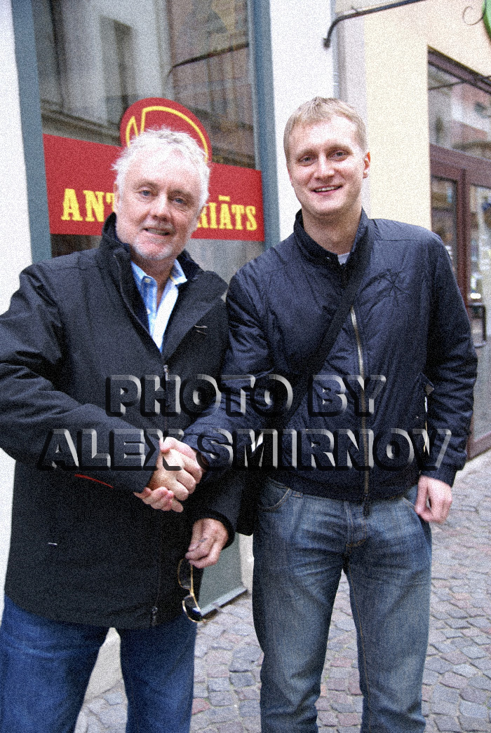 Вселившись в отель Boutique Hotel Viesturs, в котором Лёхе достался двухэтажный номер «люкс» с джакузи и выходом на крышу, мы отправились на поздний завтрак, после которого начали исследование города. Центр города совсем невелик, и мы жили в переулке от главной улицы старого города. Рассматривая магазины, Алексея, как выяснилось, ценителя российского императорского фарфора, привлек магазин Volmar с очень обаятельными русскоязычными хозяевами. Как только мы вошли в внутрь обратили внимание на разговор хозяйки с упоминанием некого персонажа по имени Брайан Мэй… Когда она освободилась я поинтересовался о каком-таком Брайане Мэйе она говорит? Оказалось небезызвестный гитарист Queen был здесь днем ранее и прикупил пару колец… Мы, конечно, рассказали о том, что приехали именно ради него, ну и ради ещё одного товарища по имени самизнаетекак. Надо сказать, что все в Риге не могли поверить, что эти трое сумасшедших людей метнулись на концерт в Ригу, при этом посетив ранее аж два концерта в Москве! И вот мы продолжаем стоять и разговаривать то о концерте, то об антиквариате и в этом момент дверь открывается и в лавку заходит… РОДЖЕР ТЕЙЛОР со своей подругой Сариной! Я – единственный кто в этот момент смотрел в сторону двери – аж дар речи потерял и смог сказать только «Hi, Roger»… Собравшись с мыслями и поняв, наконец, что это не сон, я поприветствовал ударника Queen и в двух словах рассказал, кто мы, откуда приехали и с какой миссией. Роджер расспросил о московских концертах – были ли мы на них, и понравилось ли, сфотографировался со мной и проследовал в глубь магазина. Мы, наверное, минут 5 ещё постояли рядом с ним, наблюдая за выбором украшений, а потом ретировались на улицу и стали поджидать там. Томительное, надо сказать, такое ожидание, тем более что Роджер не спешил быстро расставаться с деньгами и долго и упорно что-то рассматривал. За это время хозяин магазина даже успел за массивным кольцом сбегать в соседнюю лавку. И вот, наконец, Роджер и Сарина вышли из магазина, купив там, как позже выяснилось, кольцо за 400 лат (800 долларов). Я как бы невзначай предложил Роджеру ещё раз сфотографироваться, сказав, что это будут “quick photos”. Он переспросил, и я ещё раз подтвердил, что ставить свет и заниматься художественной фотографией мы не собираемся. Во всяком случае, не сейчас и не на улице. Сфотографировав Анну и Алексея, я попросил Роджера и Сарину тоже позировать, что они с радостью и сделали, оставив на фото свои довольные покупкой и, возможно, встречей с нами, улыбки. Мы пожелали Роджеру удачи на концерте и обещали быть и посильно участвовать в завтрашнем шоу. Через минуту к нам вышел хозяин магазинчика, и поведал о том, что Роджер ко всему прочему обещал вернуться через час за «античными» часами на базе часов «Полёт» за 40 лат, если хозяева починят сломанный браслет. Кому именно предназначалась эта покупка осталось загадкой. Мы наглеть не стали и через час заглянуть в магазин не пытались. Вместо этого прошлись ещё по центру, надеясь встретить кого-нибудь ещё, но тщетно. Однако на следующий день нас ожидала встреча с Джимом Бичем, который осматривал Домский Собор и с Брайаном после концерта, но об этом чуть позже. Встреча с Роджером способствовала выбросу адреналина в кровь, мы были так возбуждены, что не стали ложиться спать до самого вечера. Рекорд без сна в эти дни сост
