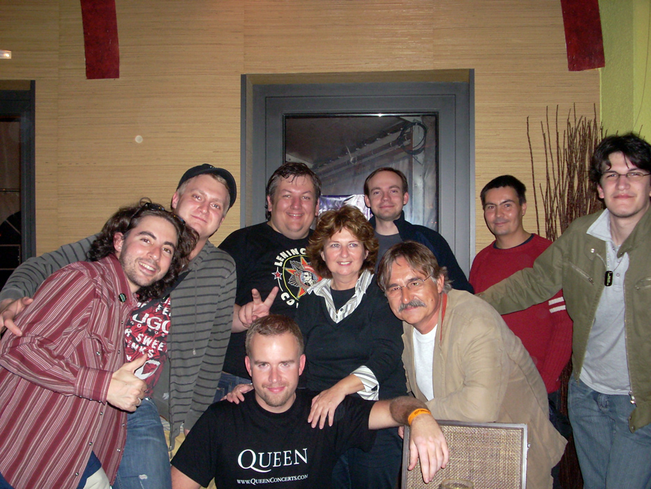 Вечером после концерта состоялась очередная встреча с интернациональной компанией. Были, конечно, в большинстве своём сплошные немцы, но и поприсутствовали «старые персонажи», включая «совсем старого» приятеля Миклоша из Будапешта, с которым я путешествовал по концертам Брайана ещё десять лет назад. Разлука была долгой, так что Миклош даже меня не признал за день до этого в Мюнхене. Недурно посидели, Миклош, как и 10 лет назад развлек нас своими знаниями русского языка, поболтали с парнями из Аргентины, а потом ещё и отвезли их до гостиницы.