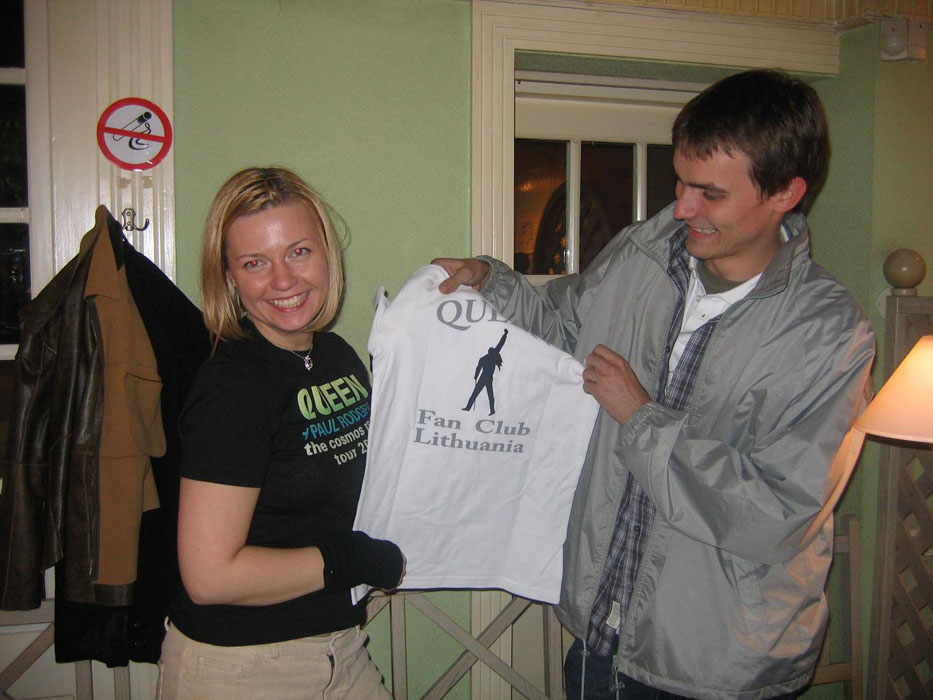 Сразу после одного события нас ждало другое – русско-литовская встреча на высшем уровне – мы и пипл из литовского фэн-клуба в заведении Chili Pica. Анне была торжественно вручена фирменная футболка фэн-клуба, для меня, конечно, размера не нашлось, а Алексей получил свою футболку прямо с плеч одного из наших новых знакомых. Мы немного пропиарили Queenrocks, типа: «Заходите к нам на сайт», а прибалтийские квиноманы пригласили нас в гости в Литву, куда, я надеюсь, мы скоро съездим. Всем литовцам – огромный респект, очень рады были со всеми познакомиться. Отдельный респект Айве, которая всех нас передружила.