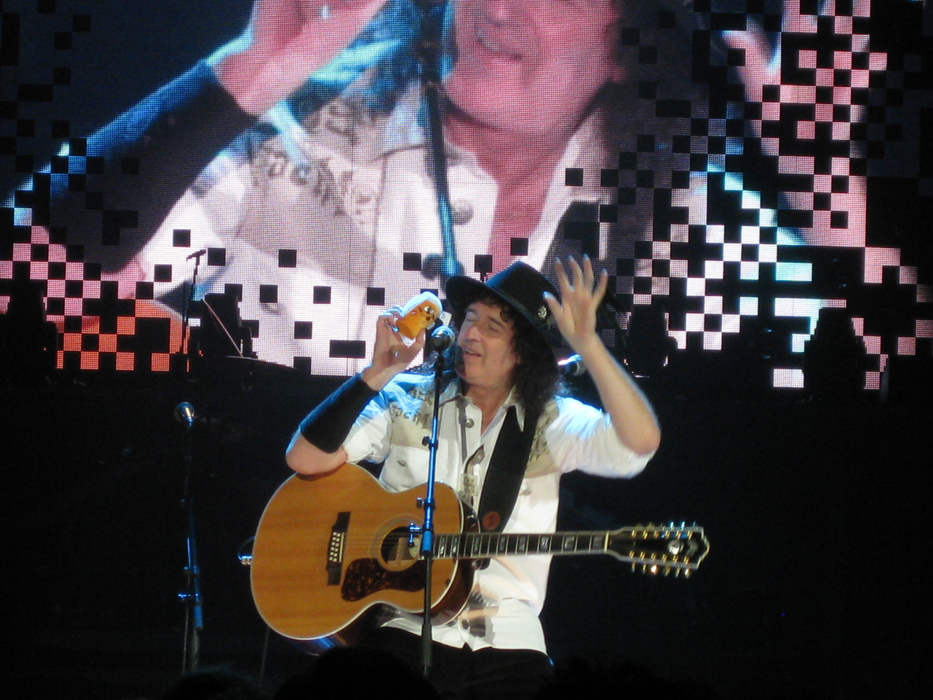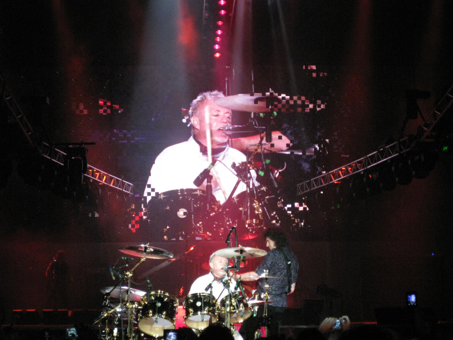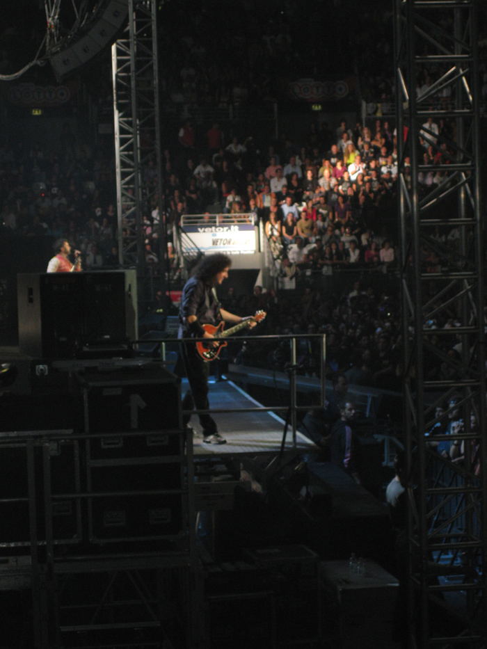Никаких особых изменений по сравнению с туром 2005 года. Порадовал новый видео-ряд во время оперной части. Хочется отметить огромное количество камер телефонов, фотоаппаратов и других устройств во время Bo Rhap. В Риме и Милане так вообще можно было ими зал осветить… То ли люди снимают это от любви к Фредди, то ли ни у кого нет монреальского концерта на видео… J